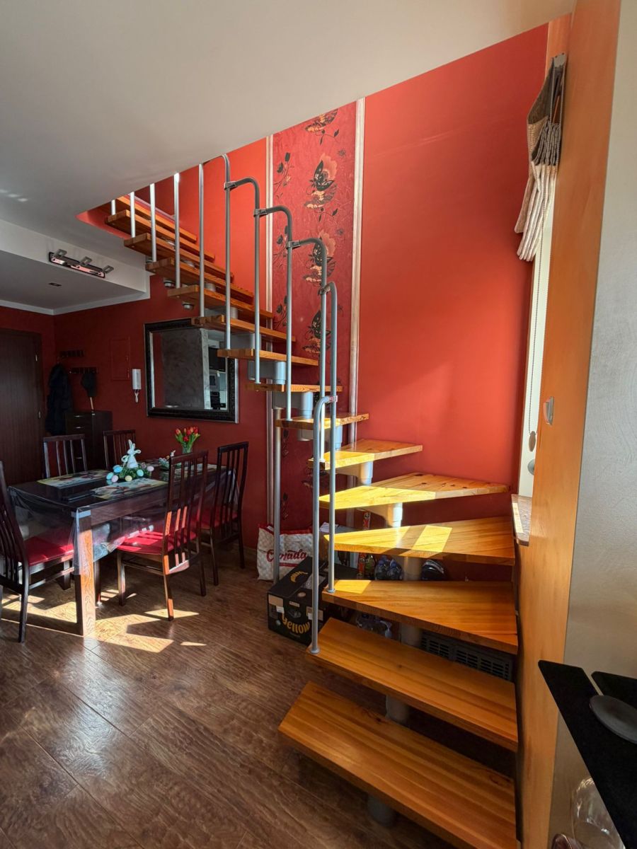 To nie jest standardowe mieszkanie w bloku - unikalny, dwupoziomowy układ sprawia, że wnętrze jest niezwykle przestronne i daje poczucie prywatności.